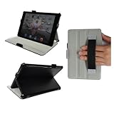 - Built-in adjustable stand with two viewing angles (typing and watching); Built-in elastic hand strap, and elastic loop for pen or stylus