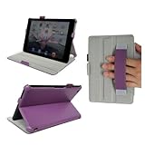 - Built-in adjustable stand with three viewing angles (typing, viewing and watching); Built-in elastic hand strap, and elastic loop for pen or stylus